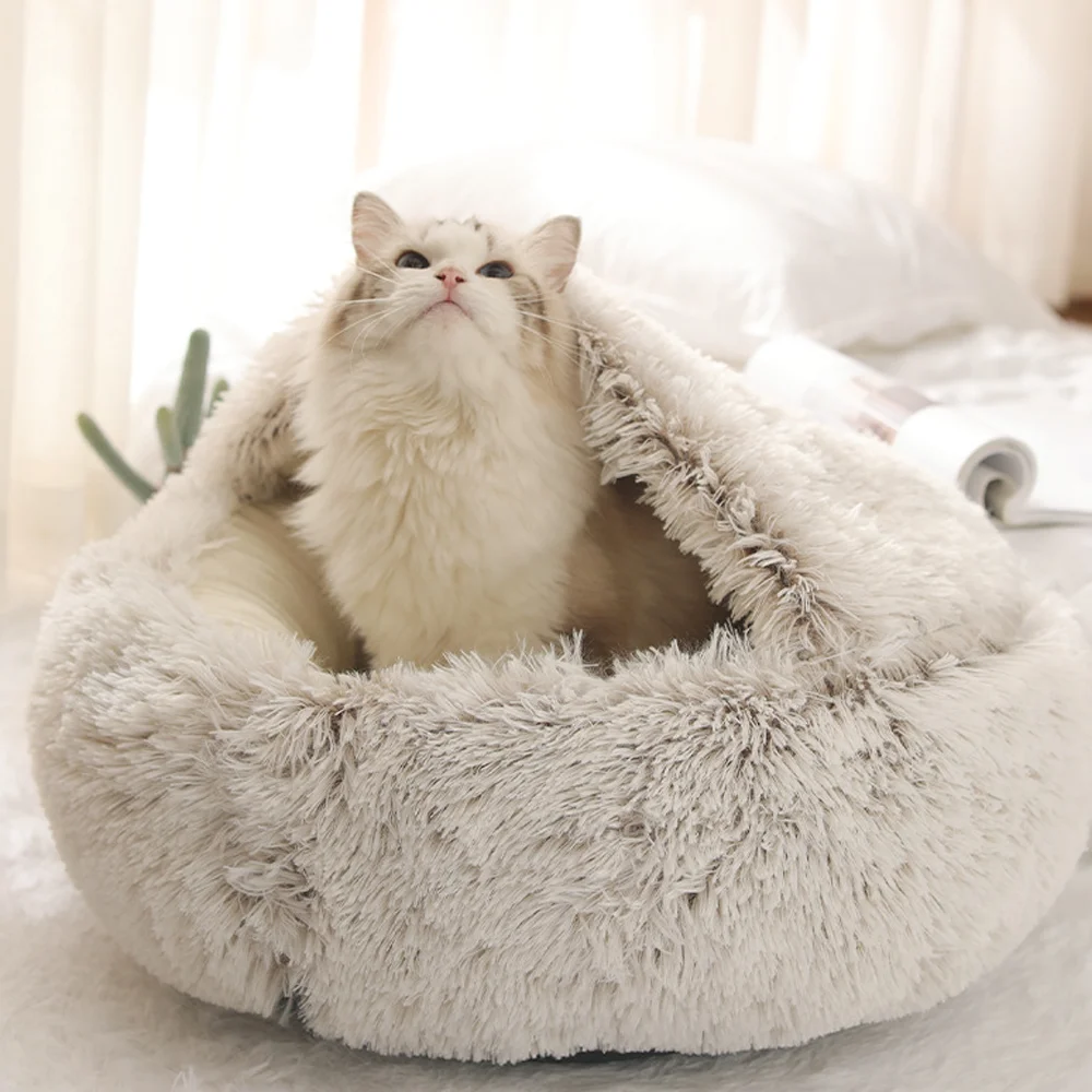 Winter Cat Bed Long Plush Pet Cat Cushion Warm Sleep Bag Bed Round Half-Pack Cat Basket Lounger Nest For Small Medium Large Dog