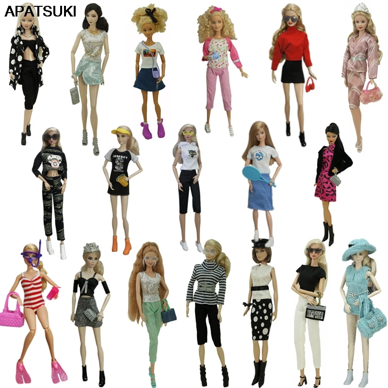 Fashion Outfits For Barbie Doll Clothes Set For Barbie Shirt Pants Shoes Glasses Crown Purse Hat Toys 1/6 Dolls Accessories