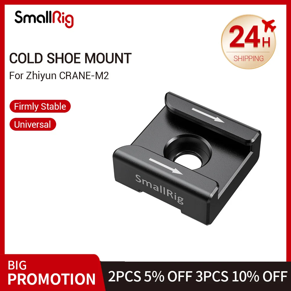 SmallRig Cold Shoe Mount Adapter for Zhiyun-Tech CRANE-M2 BSS2437 Key Features:1. Designed for Zhiyun-Tech CRANE-M2 Gimbal2. Integrated Cold Shoe Mount 3. Secures to the Left Side of Crane M2 via 1/4 Screw4. Features Anti-Twist Slot on the Back5. Weights Only 18g SmallRig Cold Shoe Mount Adapter for Zhiyun-Tech CRANE-M2 BSS2437 is designed to mount accessories features cold shoe to the side of Crane-M2, such as microphone and sound receiver. It secures to the side of Crane M2 via a 1/4 screw and features anti-twist slot on the back to prevent twisting. You can also mount a cold shoe magic arm or ball head for monitor. Designer: Clara Oswald Compatibility: for Zhiyun-Tech CRANE-M2 Gimbal Package Includes:1 x Cold Shoe1 x 1/4 Screw1 x Hex Spanner Product Dimensions: 25 x 24 x 10.5mmPackage Dimensions: 76 x 63 x 40mmNet Weight: 18gPackage Weight: 36gMaterial(s): Aluminum Alloy