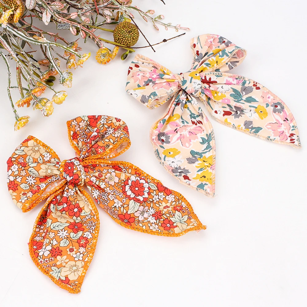 Elegant Chiffon Big Bow Spring Hair Clip Fashion Print Floral Hair Barrette For Women Girls Sweet Hairclip Hair Grip Accessories