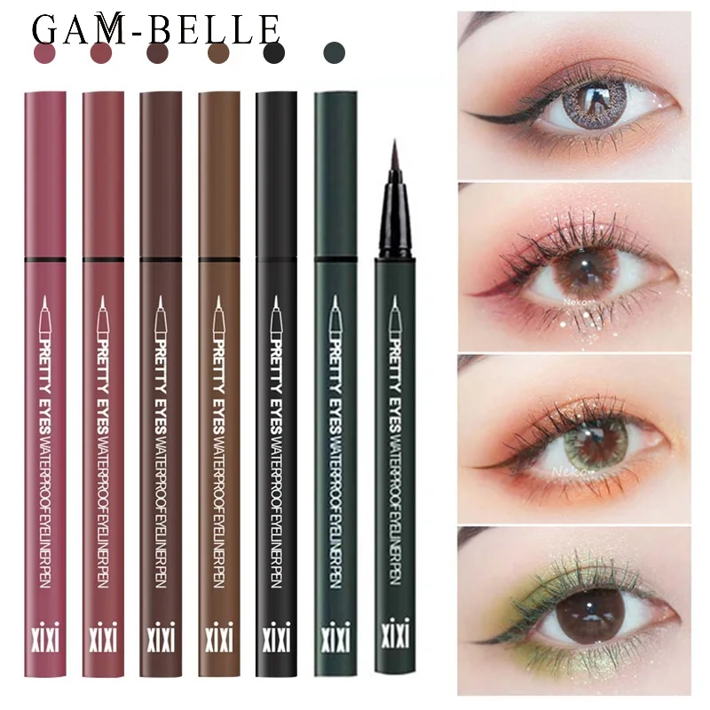 GAM-BELLE Waterproof Long Lasting Black Eyeliner Pencil Fast Dry Not Blooming Charm Eye Liner Pen Liquid Pigments Makeup ToolDescription:Brand New & High quality.Portable size, easy to carry.Suitable for professional use or home use.Beautiful shades around the eyes last long.Easy to Wear,Natural,Long Lasting,WaterproofThick black and quick-dry, with ultra-fine tip and black formula.Specification:Color: Black, Rose Purple, Light Brown, Dark Brown, Maple Leaf Red, Blue, Grey, GreenType: EyelinerBenefit: Fast/Quick Dry,Natural,Long-lasting,Easy to WearFormulation: LiquidOccasion: Party makeup/casual makeup/wedding makeup,etcPackage Included: 1Pc Liquid Eyeliner Pencil