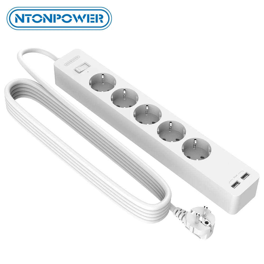 1. 3 Meter Long cable power strip: Power strip with long cable allows you to extend wall socket to your desk or bedside well and easily. Soft but flexible power cable has longer service life. And European standard plug can be used it in most European countries. 2. Wall Mounting by Using Sticky Plastic Plate: It’s outdated to drill holes in wall for wall mounting power strip. Using wall moungting plastic plate with super sticky adhesive on both sides, you can wall mount power strip within 30 seconds. The glue won’t leave traces when you remove it. There’s no more power strip collect dust on ground in your house. 3. Smart Life Spend with NTONPOWER: The power strip with 2 smart USB can provide some conveniences for charging device. NTONPOWER’s smart USB port can automatically detect charging devices and provide suitable current for different devices. Your electronics can be charged fast and safely. 4. Came with Multiple Protections: External factor might cause overvoltage and overcurrent to your household circuit sometimes. Overload protection in the switch will react quickly and cut off power in a flash to protect connected appliances. Moreover, housing of NTONPOWER power stirp is made from 750 ℃ flame retardant materials, which can effectively prevent fire accicent. 5. 18 Months Warranty and certified: Our product include 18 months warranty. You can easily get warranty and support from Customer Service if needed. The product also has CE & ROHS certified, which quality is deserved to trust.