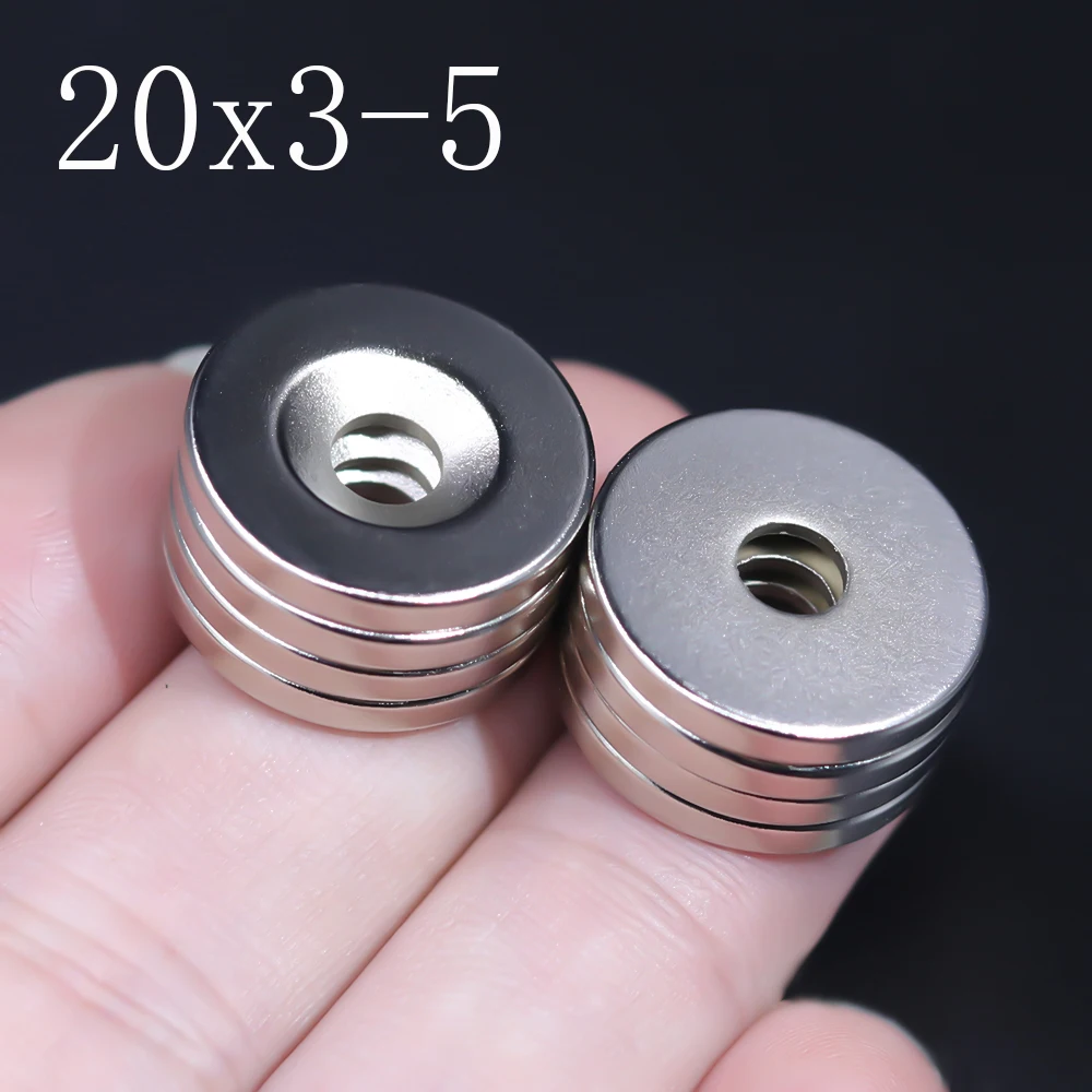 Shape: BlockSize:Diameter 20mm x 3mm with the hole 5mmMaterial:Neodymium magnetTolerance:±1.5mmCertification:RoHS passedGrade:N35Max Operating Temperature: 80C/176FPlating: Nickel + Copper + Nickel Triple Layer Plated