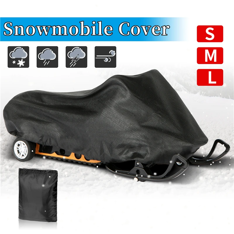 1pc Winter Outdoor Snowmobile Cover Universal Waterproof Dustproof Anti-UV Multi-function Trailer Sled Cover Lawn Mower Cover Notice: Just a cover, NO including snowmobiles . Thanks !!!Specifications:Material: Polyester + Waterproof coatingColor: BlackSize:S:145*51*48CMM:292*130*121CML:368*130*121CMScenes to be used:1. It can be used when it is snowing to block the damage of wind and snow and protect motorcycles2. It can be used when it is windy to prevent the motorcycle from being scratched, and it can also prevent dust3. It can be used when the sun is out to prevent damage to the car caused by sun exposure, and it can also prevent ultraviolet rays4. It can be used when it is raining to prevent the body from being washed by heavy rain, etc.Features:1.Anti-UV2.Firm stitches3.Do not fade4.Durable5.Waterproof6.Polyester + Waterproof coating. Heavy duty material7.Easy to attachApplicable models:Universal for snowmobilesPackage Include:1pc x Snowmobile Cover+ storage bag