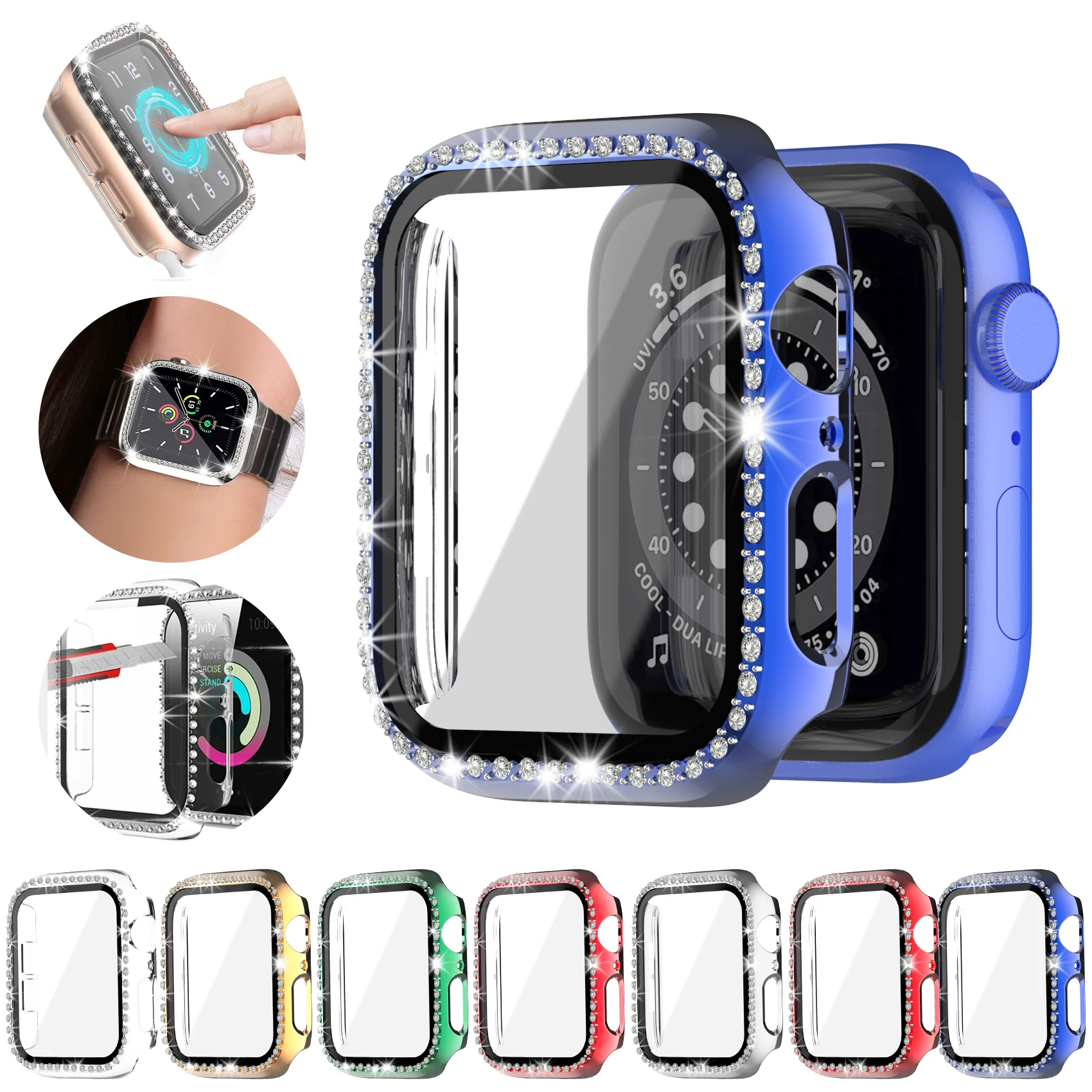 COMPATIBLE MODELS - Apple watch cases are compatible for Series SE/6/5/4/3/2/1;38MM/42MM sizes are compatible for Series 3/2/1;40MM/44MM sizes are compatible for Series 6/5/4/SE.ULTIMATE DURABILITY - We use premium quality and shiny diamonds to glam your apple watch device for you.High quality hard PC material & built in 0.33mm tempered glass screen protector offer 360° protection to the watch face protecting against small bumps and scratches.The edges of the bling rhinestones are also long lasting and do not easily fall off.STYLISH SHINY DESIGNS - Nice sparkling covers, cute & slim design, lightweight, popular stylish colors apple watch cases to personalize your apple watch and fit your mood, outfit in daily life, bling up your apple watch and highlight your unique taste.SENSITIVE TOUCH - We use excellent glass quality that ensures despite your screen being covered with a case, you can continue to operate it without any interference.EASY OFF,EASY ON - The installation process for this case is easy to take on and off and will require no special equipment or skills.You do not need to remove the watch band to put on this protector.Wherever you are, the apple watch covers can bring you a comfortable wearing experience.